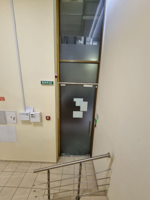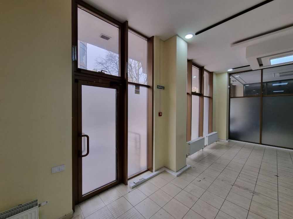Три больших панорамных окна и вход с улицы В-А Жукова , стеклянная стена и вход из коридора бизнес-центра