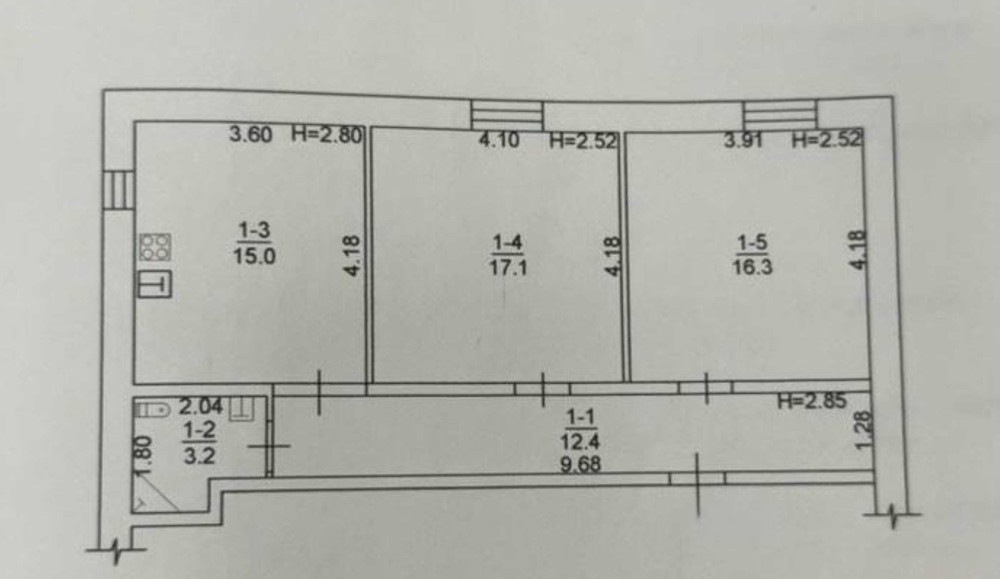 • Трехкомнатная