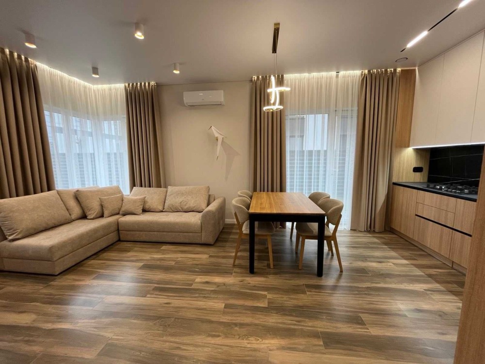 Планування: кухня вітальня з виходом у свій дворик, 2 кімнати, 2 санвузли.