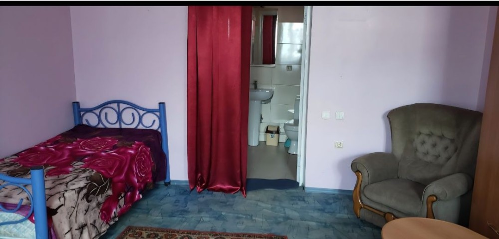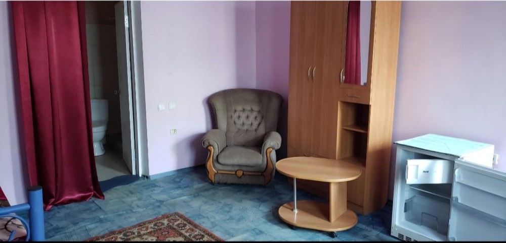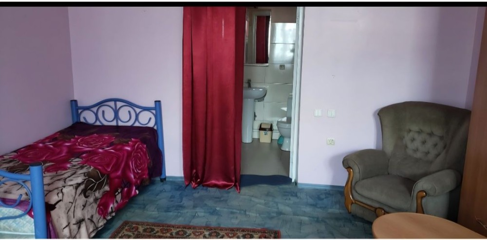Одна просторная комната, свой вход, туалет, душ, холодильник.