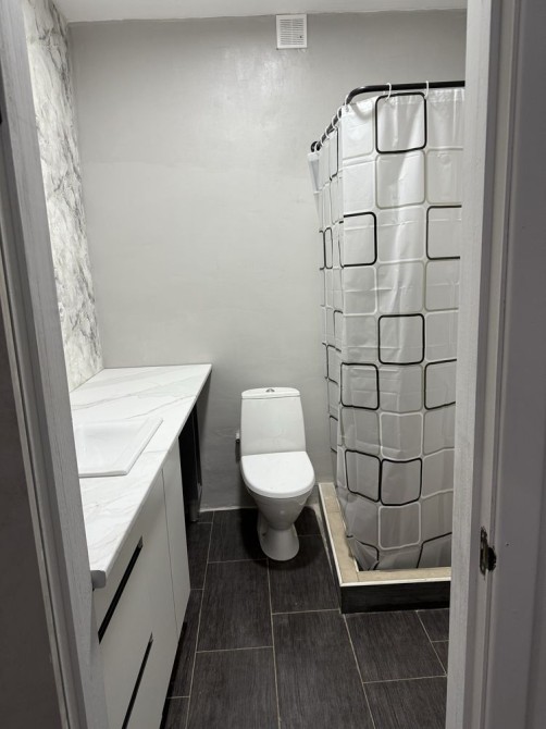 Ванна кімната :душова, велика стільниця з раковиною, туалетом та пральною машинкою. Є гаряча вода -бойлер.