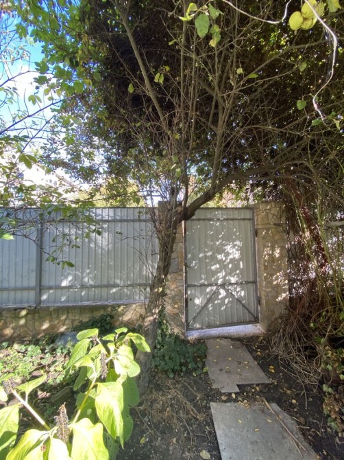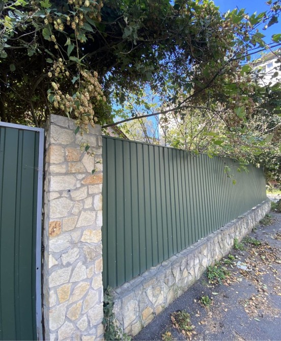Огороджено, паркан металевий лист, біля будинку є ділянка