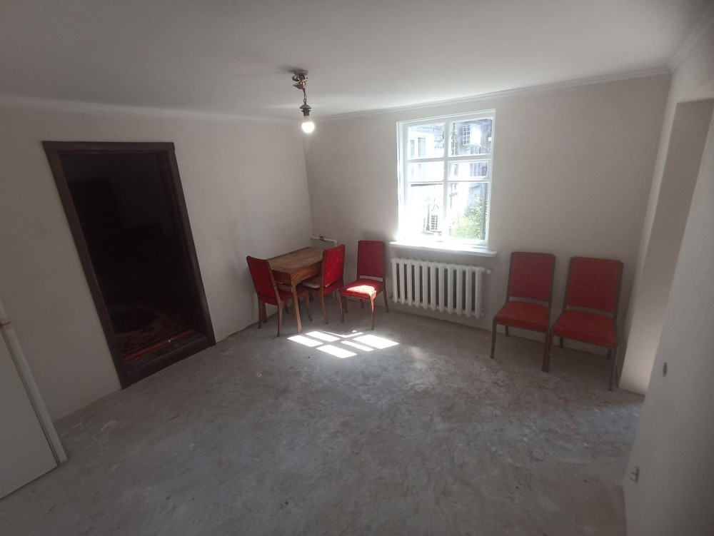 Загальна площа 43 м2: кімната - 19.5 м2, кухня - 13.5 м2, суміжний санвузол та коридор.