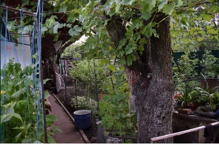 2. Летний душ; хозяйственные постройки и сараи, в которых можно держать живность, + земельный участок с плодовыми деревьями, сортовым виноградом, малиной, смородиной, черноплодной рябиной, цветами и т.д.