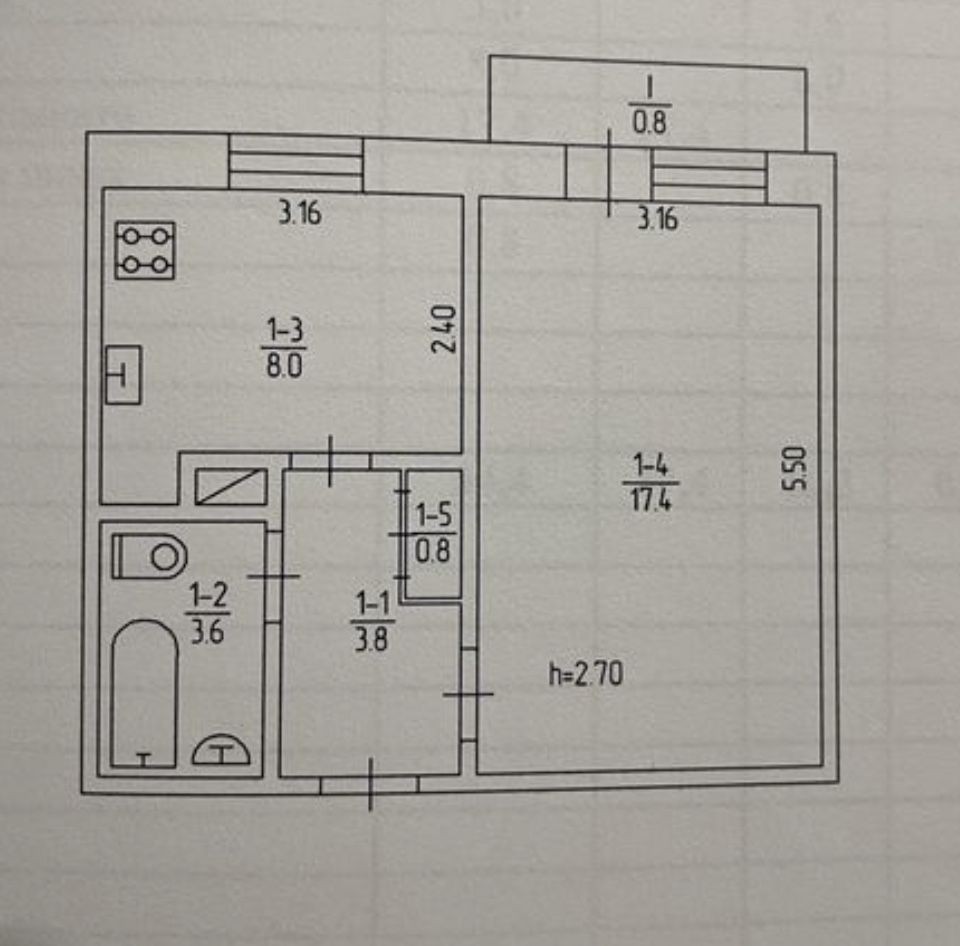 • Площадь кухни 8 м2