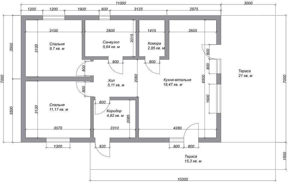 Міжкімнатні двері: входять у вартість (на вибір).