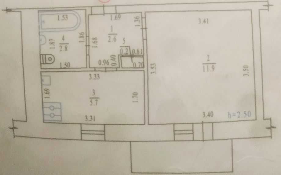 • Площадь кухни 5.7 м2