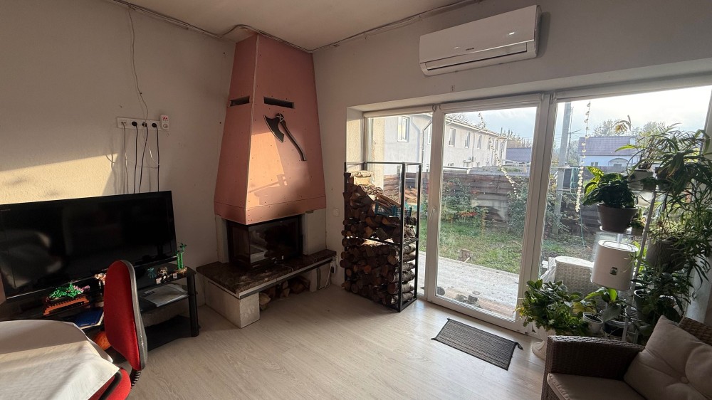 Опалення від енергоефективного теплового насосу, окремо на кожному поверсі встановлені електрорадіатори, + резервне опалення від каміну, можна провести газове опалення, встановлений двоконтурний газовий котел, тільки провести труби, стіни штробити для цього не треба, можна зробити поки не дороблений ремонт.