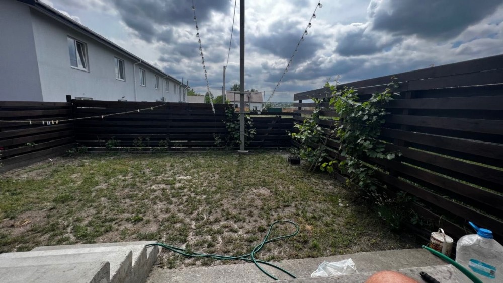 Досить велика для тауну ділянка, заднє подвірʼя 65м2, достатньо для мангалу, шезлонгів, таун кутовий, збоку на власній ділянці є місце для господарської діяльності, є як завезти і де скласти дрова, можна ставити мотоцикл чи велосипеди
