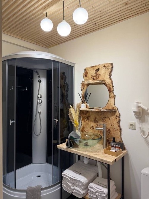 • Комфорт Кондиционер, Душевая кабина, Терраса, Камин, Сигнализация, Видеонаблюдение, Подсобные помещения, Солнечные электро панели, Автономный электро генератор