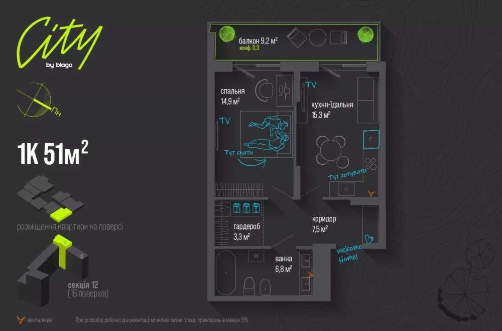 City by Blago • 1-кімнатна квартира