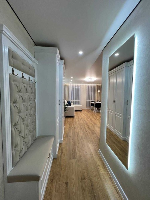 Квартира з якісним сучасним ремонтом, виконаним у стриманому та елегантному стилі.