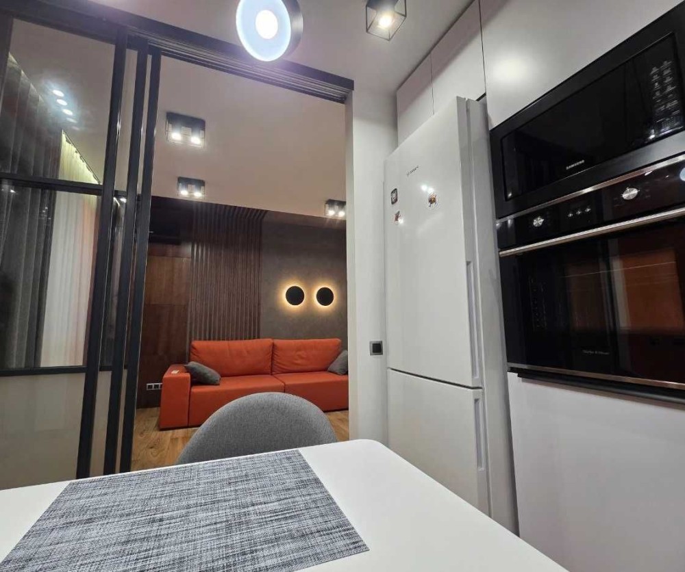 Квартира повністю укомплектована дизайнерськими меблями та технікою від відомих виробників.