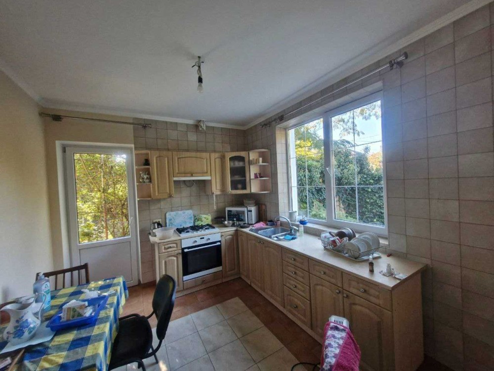 БЕЗ%, будинок 190м2, Віта Поштова, СТ «Хуторець», навколо ліс, 9 км Київ та м.Теремки, Одеська траса Загальна площа будинку - 190м2. Площа земельної ділянки 10.38 соток. Будинок знаходиться в затишному та мальовничому місці, між Вітою Поштовою та Тарасівкою, оточений дорослим хвойним та листвяним лісом, з власним виходом на озерце. Побудований на пагорбі, дає можливість насолоджуватись неперевершеним видом на ліс та озеро, крізь великі панорамні вікна будинку 24/7. Раціональне та комфортне планування, великі, світлі та просторі кімнати з панорамними вікнами. 1й поверх: столова – вітальня, кухня, гердероб, санвузол, гараж, котельня; 2й поверх: три окремі спальні кімнати, санвузол. Об’єкт для поціновувачів заміської тиші та ранкових піщих прогулянок!