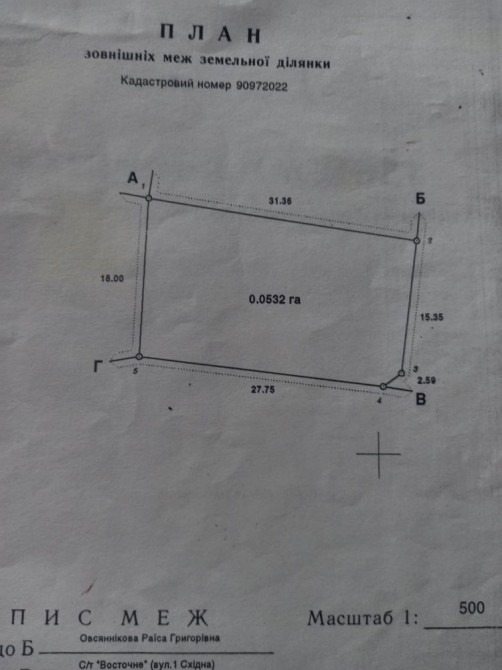 Ділянка майже 6 соток,правильної форми,на ділянці плодові дерева.