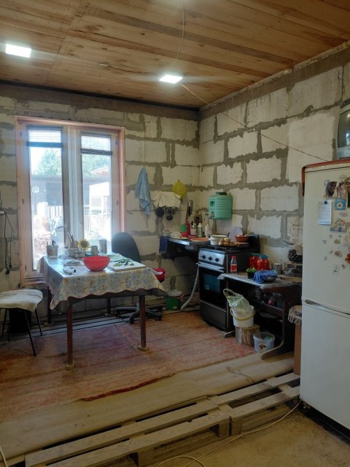 Будинок - новобудова 2022 рік (7×9 м), велика кухня-студія 21 м², кімната 16,3 м², санвузол, котельня, Внутрішні роботи частково зроблені. встановлені дерев'яні євровікна.