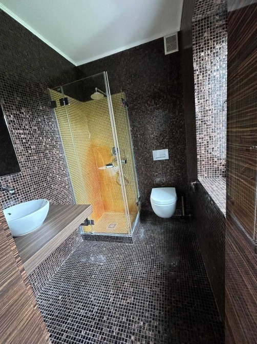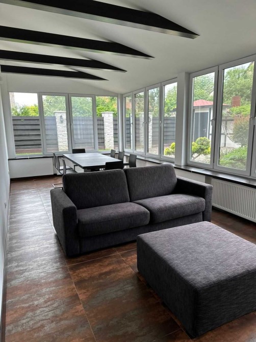 У підготовленому для оренди новому будинку в Києві є все необхідне для життя орендаря. Кухня повністю укомплектована: система зберігання, холодильник, газова варильна поверхня, духовка, витяжка, посудомийка. На терасі оформлена дизайнером їдальня, ТВ-зона з акустичною системою та диваном. Стильний дизайн санвузлів. Звісно, у підготовленому для здавання в оренду київському будинку є пральна машина та кондиціонери у житлових приміщеннях.