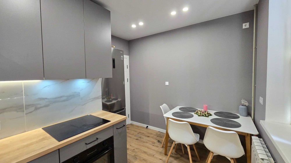 - Квартира з найкращим плануванням - великий квадратний хол і 3 окремих кімнати, 2 лоджії, простора кухня і санвузол. Ремонт 2023 року, майже не встигли користуватися. Замінені абсолютно всі капітальні речі: вікна і міжкімнатні двері, проводка, труби холодної, гарячої води і каналізації, сантехніка Grohe, біметалеві радіатори опалення, вхідні двері. Класно підібрані кольори, хороші матеріали + все якісно зроблено. Встановлені лічильники на воду, бойлер, декілька зон теплої підлоги, продумана вбудована кухня з усією необхідною технікою відомих брендів(навіть посудомийна машина)