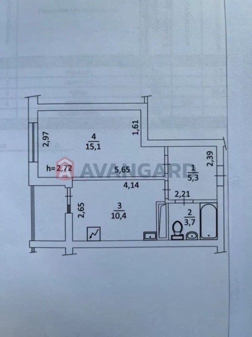 Загальна площа 38,2 кв.м., житлова площа 15, 1 кв.м.