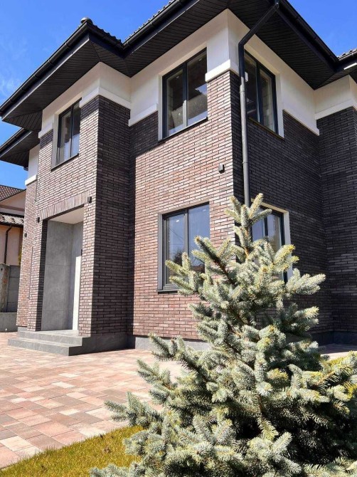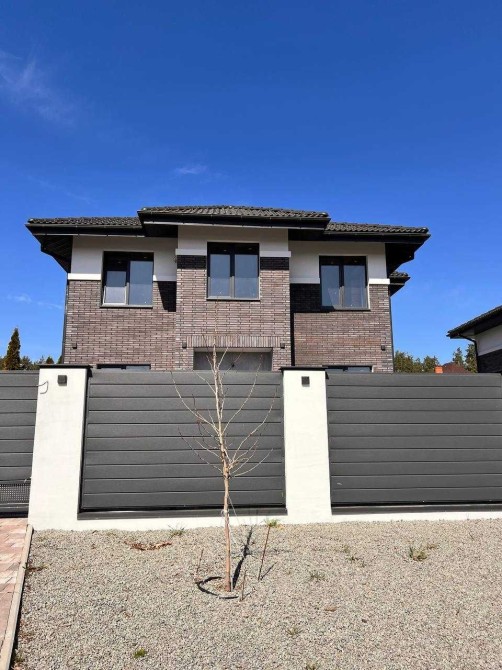 Ідеальна площа будинку 155 м2, два поверхи, три житлові кімнати, гардеробні кімнати, кухня-вітальня з виходом на терасу. Розмір земельної ділянки 5 соток.