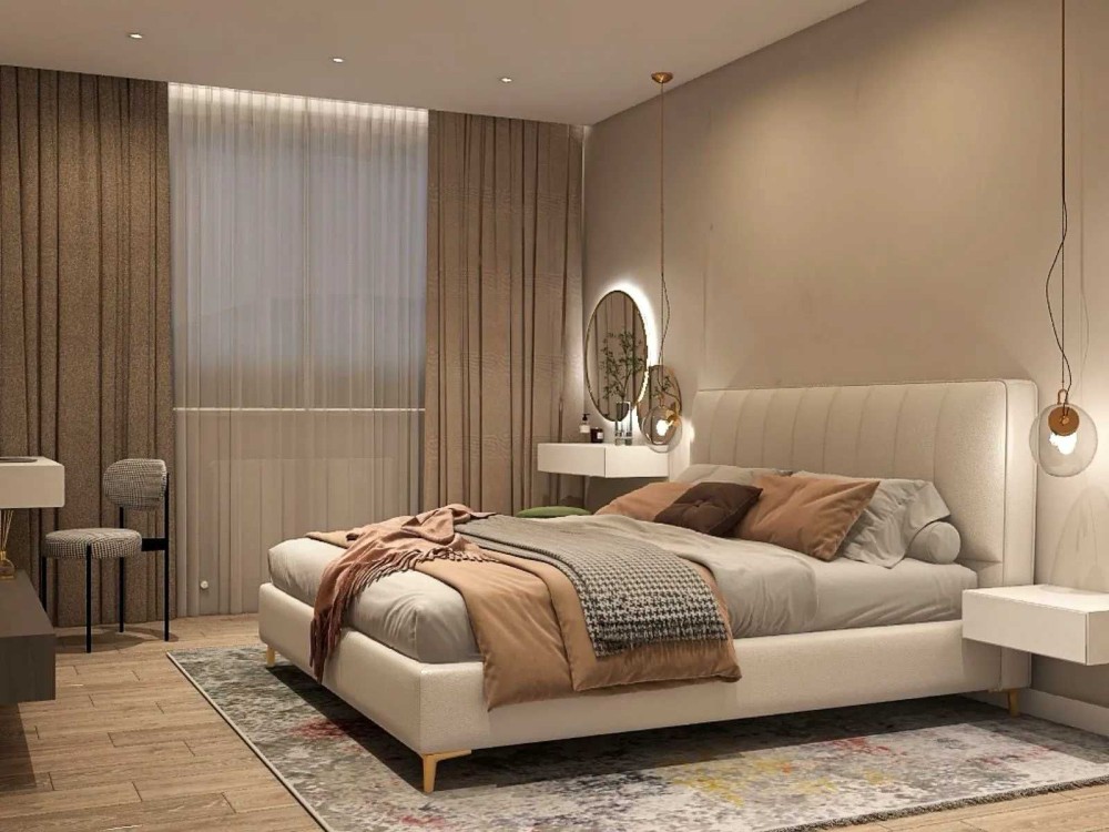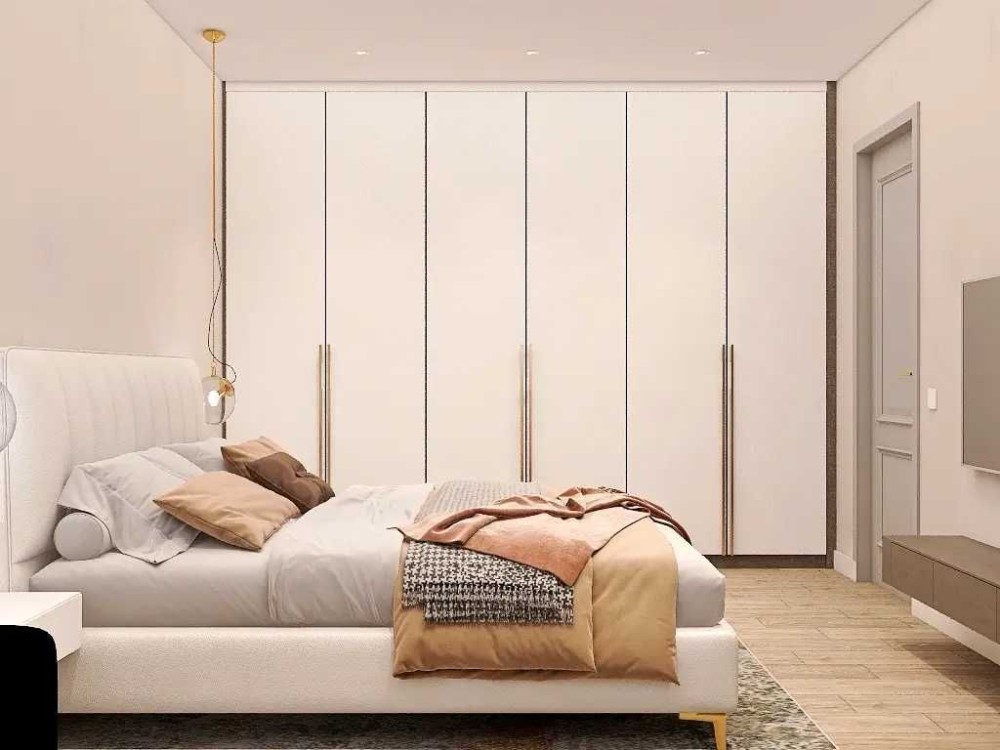 Спальня із великим ліжком 200*180 з ортопедичним матрацом, вмісткою шафою та точковим освітленням.