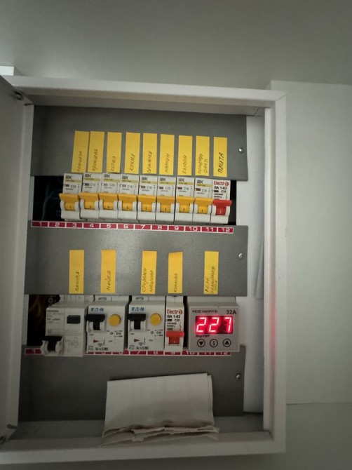 У спальні світильники Philips. На кухні стіна графітова, де можна писати крейдою. Електрика Одеський кабель.