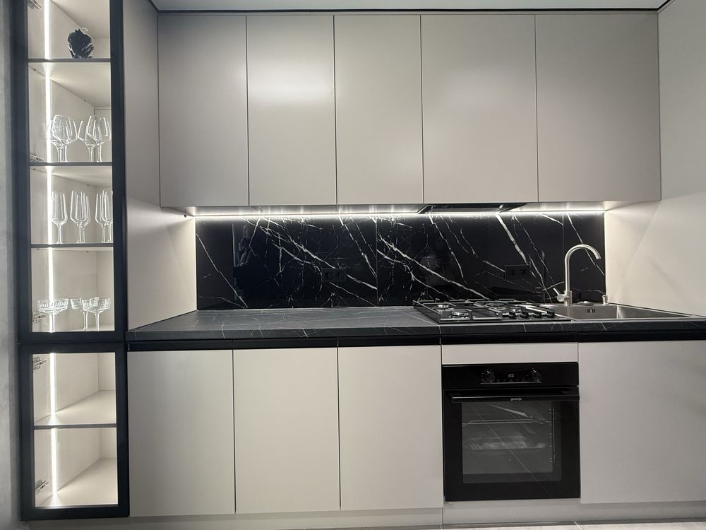 Повністю укомплектована технікою вбудована кухня.