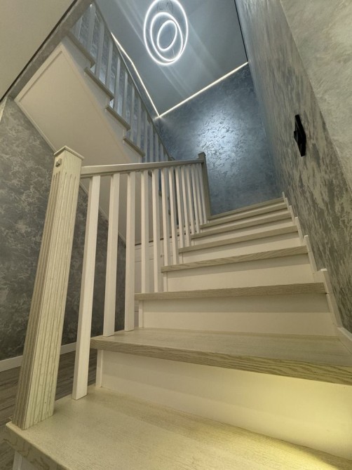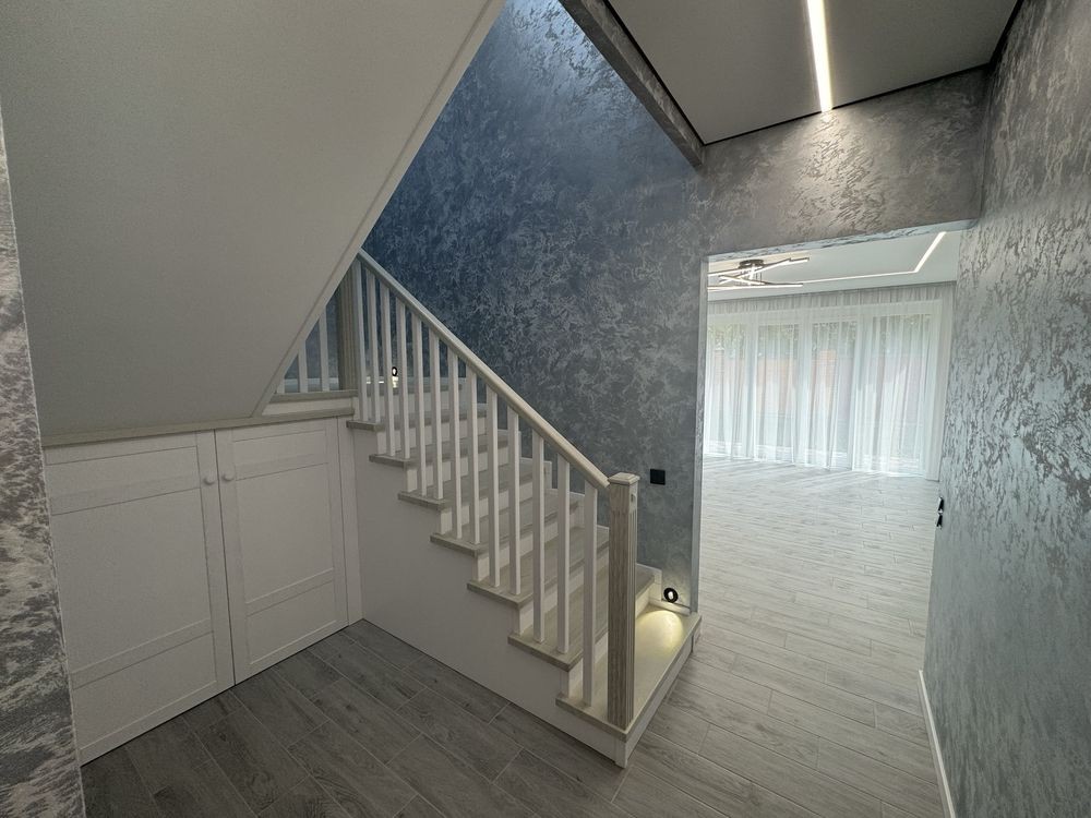 У таунхаусі зроблено дизайнерський ремонт з самих якісних і доволі дорогих матеріалів.На першому поверсі розташована кухня-вітальня, санвузол, постірочна та кладовку.На другому поверсі 3 спальні кімнати з виходом з кожної на просторий балкон та санвузол.