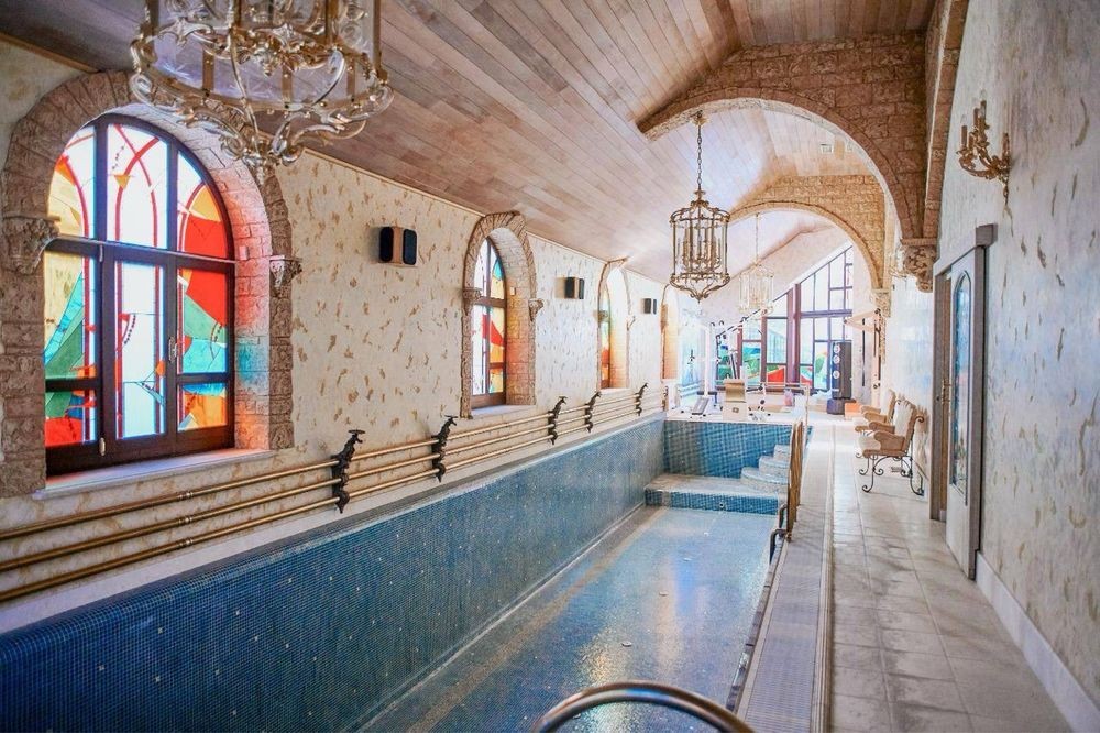 У Вашому розташуванні 6 спалень, великий басейн з підігрівом, сауна, джакузі, більярд, тенісний корт та барбекю. Гарний зал з каміном, розкішні спальні зроблять Ваш відпочинок незабутнім!