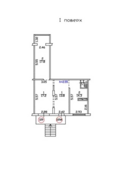 Загальна площа - 64,6 кв.м.