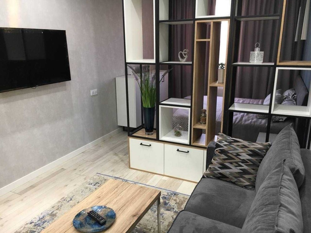 Оренда стильної 1 к кв з кухнею студією в новому будинку ЖК "Файна Таун" в Шевченківському районі, вул. Салютна, 2 Квартира 43 м2 , розташована на четвертому поверсі та складається з передпокою, спальні, великої кухні -студії та санвузла. Вікна квартири виходять в двір. Облаштована всіма необхідними меблями з екологічно чистої деревини та оснащена побутовою технікою: телевізор Samsung Smart 43, кондиціонери в кухні та кімнаті, плита індукційна, вбудований холодильник, духова шафа з функцією мікрохвильової печі, пральна машина з сушаркою. В кухні та ванній кімнаті тепла підлога, високошвидкісний інтернет. ЖК "Файна Таун" це: закрита територія з входом по картці, цілодобова охорона, відеоспостереження, паркінг, підземні контейнери для сміття, зарядні станції для електромобілів та лавки з інтегрованими батареями для підзарядки девайсів, розумне освітлення, яке підлаштовується під час доби та ще багато чого для того, щоб жити з комфортом й ні в чому себе не обмежувати) розповім при перегляді. Зручне транспортне сполучення та розвинута інфраструктура: магазини,спортивні та пішохідні зони ,зона барбекю, ресторани та кафе. Квартира, в якій поєднані комфорт та затишок, шукає своїх порядних орендарів молоду пару або одну людину без дітей та тварин. Перша оренда, квартира вільна.