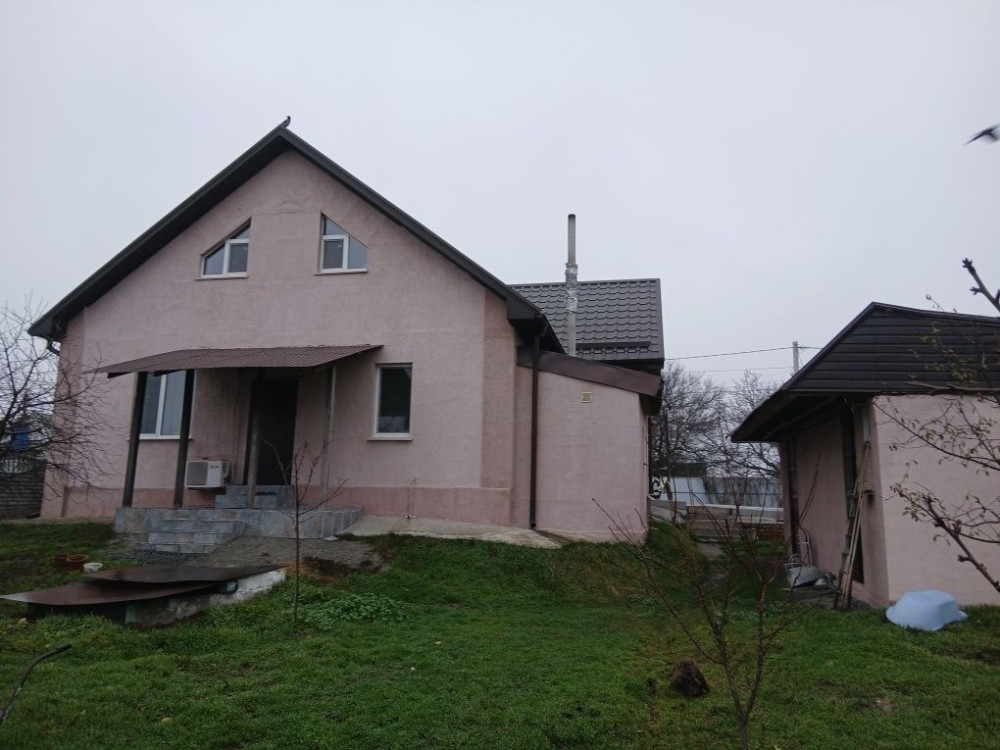 Дом 170 кв., 1 єт.,коридор,зал,кухня с виходом на терасу,ванна, гараж,котельная,2 єт.3 комн.,в настоящее время ремонт,продажа с мебелью и техникой. Електоотопление 16 кв.,+ твердотопливн.котел,дом тепл.мал нькая комуналка,хозпомещение 36 кв под баню,вода централизованая,2 слив.ям.Участок 10+7соток,собственник. Большой сад.
