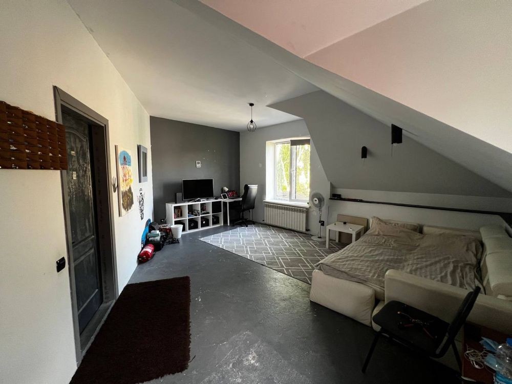 Кухня- студия, спальня , кладовая , раздельный санузел и отдельный выход во двор на нижнем этаже