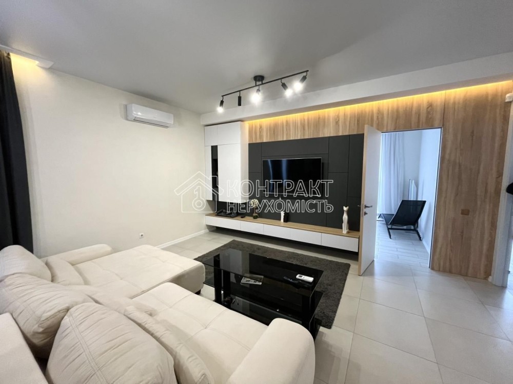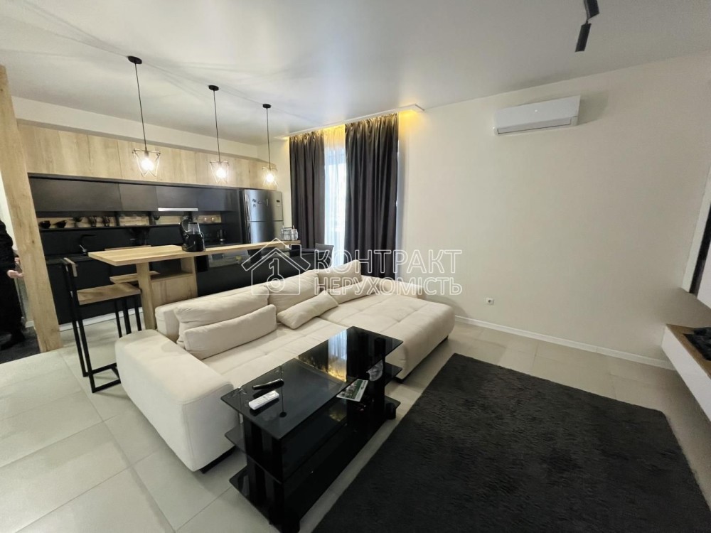 Квартира з дизайнерським ремонтом, укомплектована сучасними меблями та технікою.