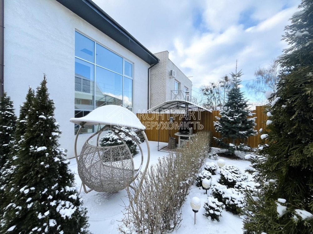 На ділянці виконано ландшафтний дизайн, висаджено туї, ялиця, гортензії, м'ята, лаванда, суниця, газон, вимощено зону для барбекю.
