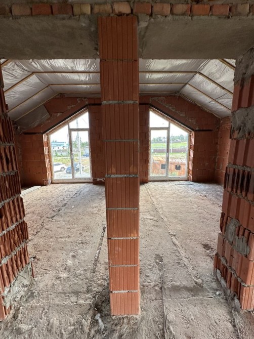 КАЧЕСТВЕННЫЕ МАТЕРИАЛЫ: Стены из керамоблока 380мм., теплены минеральной ватой 100 мм. Крыша - битумная черепица, утеплена минеральной ватой 200 мм. Внутри будет сделана чистовая штукатурка стен, заведены коммуникации, бетонная лестница на 2 этаж. Возможна дополнительная укомплектация, но обсуждается индивидуально под клиента.