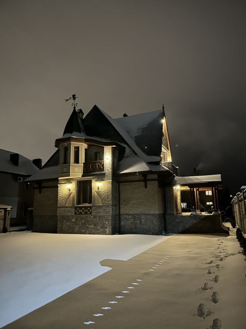 Продаж будинку (6-кімн., 298 м2, 8 соток.) на березі Дніпра, м. Київ, Оболонь, вулиця Богатирська 30а, котеджне містечко Чорнобилець (прописка/реєстрація). Ст. м Героїв Дніпра, 5хв на Авто або 10хв на міській маршрутці. - Своя набережна, є спуск для човнів (Дніпро 200 метрів), магазин, дитячий майданчик, облаштована набережна, зупинка маршрутки біля посту охорони котеджного містечка. - Статусні сусіди, закрита територія. - Асфальтовані під'їзди. - Будинок побудований за унікальним дизайнерським проектом у стилі модерн, з урахуванням геології грунтів біля води - без підвалу, з високим цоколем. - Дах: скатна мансардна, покриття покрівлі Фінська гнучка черепиця Katepal. - Утеплення покрівлі 150мм вата. - Фасад та цоколь утеплений 100мм пінопласт. - Утемленная вимощення. - Фасад облицьований плиткою Фагот на морозостійкий клей, прикрашений багетами - з пінополістиролу. - Стіни цегла, 1й поверх зовнішні газоблок. - Цоколь і димоходи натуральний камінь (Болгарський сланець). - Вікна Rehau 2-х камерні склопакети, 5-ти камерний профіль 70мм. - Мансардні вікна Velux (Данія). - Водостічна система Польща Bryza. - Зливові колодязі під землею. - Тип фундаменту: стрічковий монолітний, тип перекриття монолітні з/б. - Зроблена внутрішня розводка електропроводки. - Поштукатурені стіни. - Електрика 3 фази, лічильник день/ніч. Заведено 50 кВт. (Обмежень по споживанню немає). - Фасадні світильники Польща Nowodvorski. - Відеоспостереження на 8 камер. - Інтернет (оптика волокно). - Підлоги на балконах граніт. - Газ. - Ділянка правильної форми: 40м ширина * 20м глибина (8 соток). - Сусіди побудувалися. - Документи на будинок і ділянку. Прекрасне місце для життя і відпочинку в межах Києва біля Дніпра у своєму домі! Будинок будується. Ціна зростає по мірі готовності.