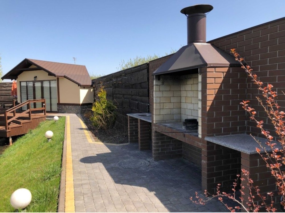 65 В Шикарний будинок з великою СПА-зоною 5 окремих спалень Для компанії до 15 гостей, спальних місць до 12 Велика тераса, барбекю, шикарний ландшафтний дизайн, велика джакузі, хаммам . Ціна до 10 гостей понеділок-четвер -45.000 грн П'ятниця , неділя -50.000 Субота 60.000 грн Кожен наступний гость 3000 грн але не більше 17 гостей