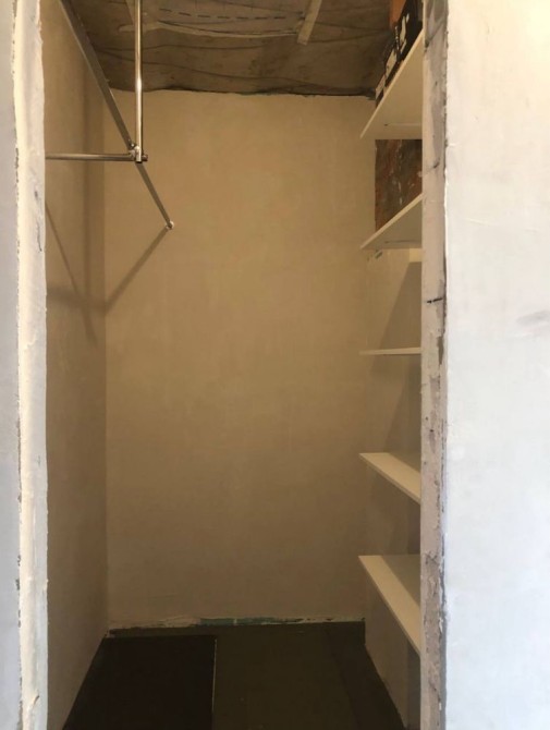 Стіни кімнат другого поверху підготовлені під чистову штукатурку, на підлозі утеплювач. Гардероб укомплектований базовими полицями та трубами для одягу. Стіни гіпсокартон + фінішна шпаклівка.