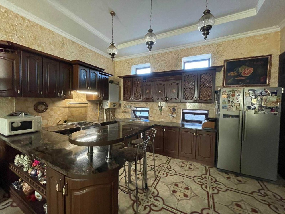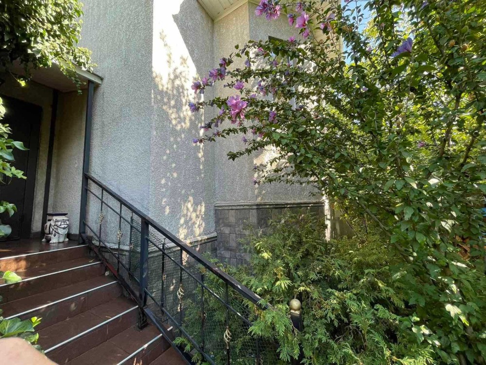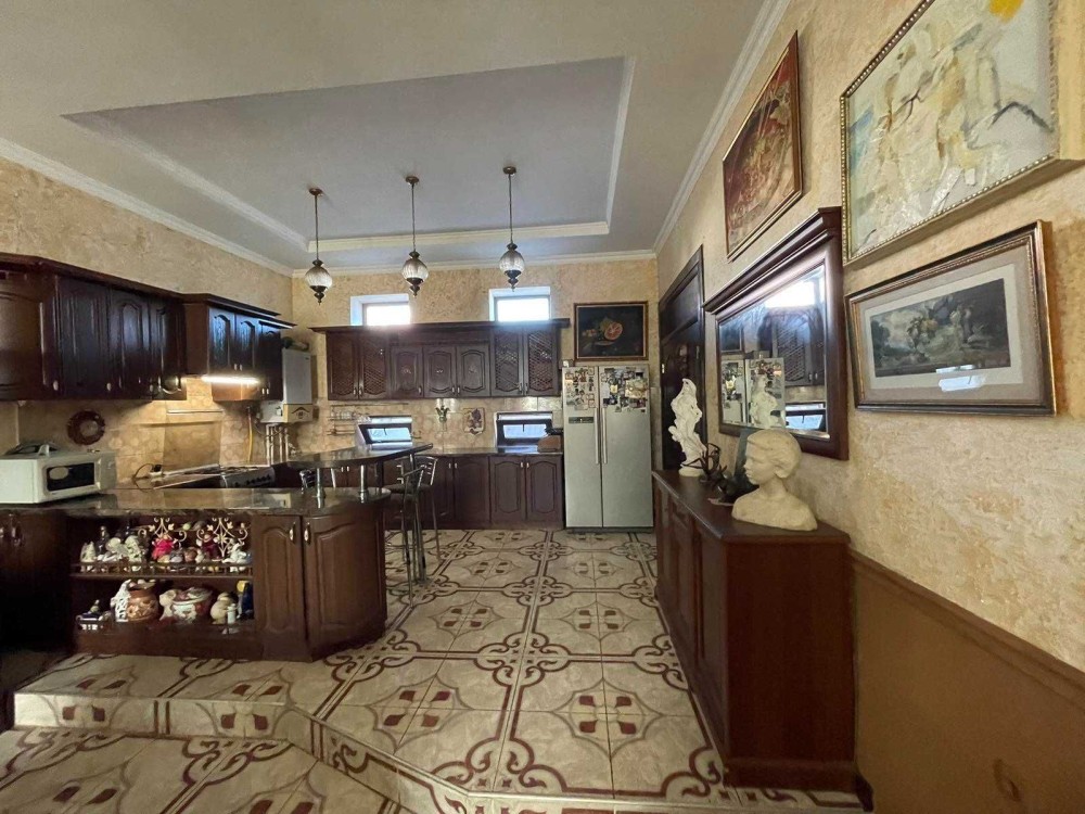 4 спальні, 2 кабінети, велика кухня-вітальня, майстерня, кілька комор і гардеробних, гараж з ямою, 2 критих машиномісця у дворі, земля 4 сотки, вигрібна яма на 9 кубів.