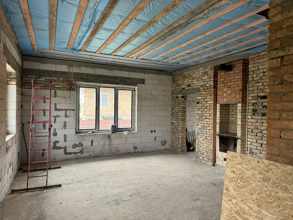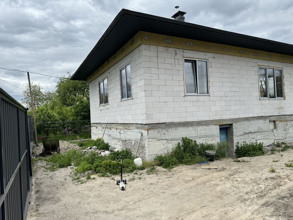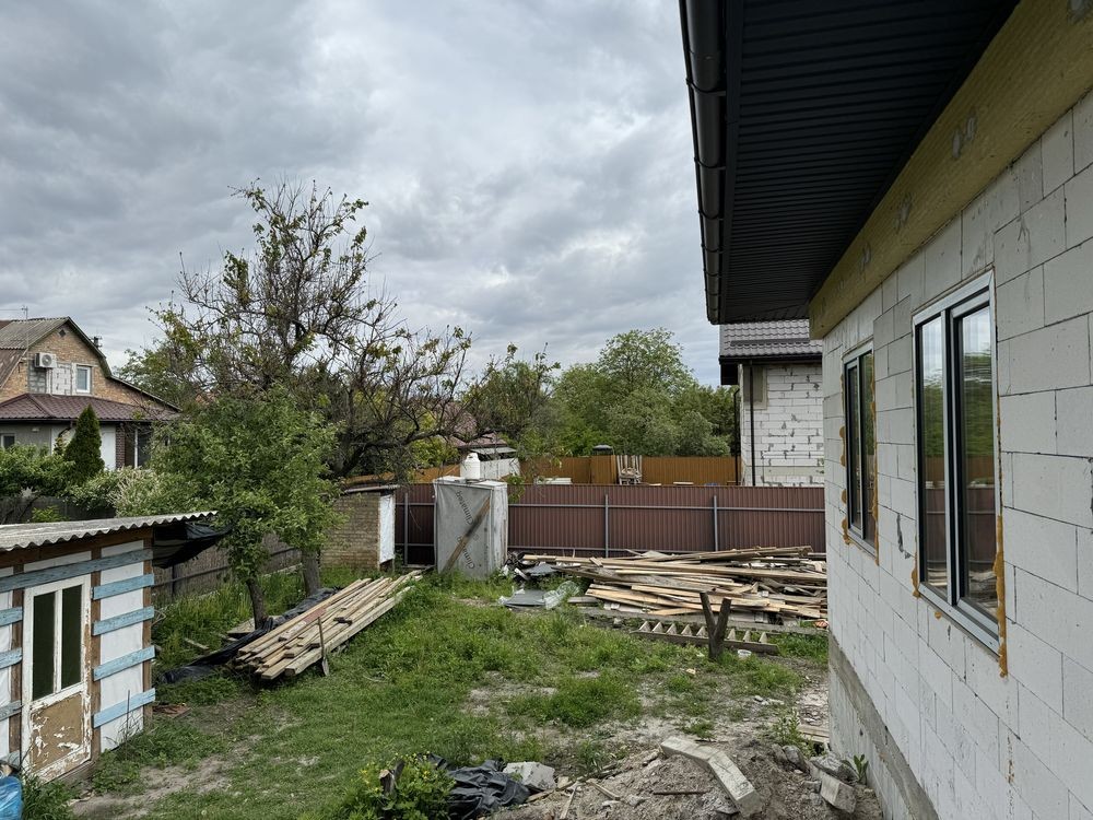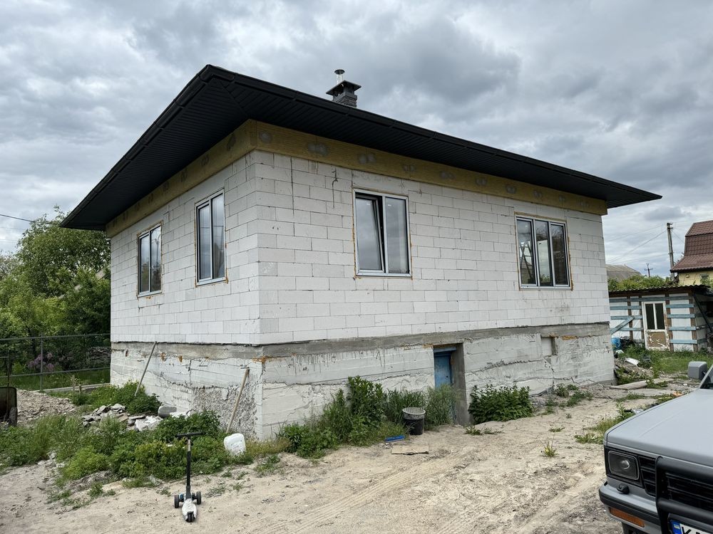Дом + участок + бомбоубежище. Осокорки 1 шлюз конечная автобуса 64, маршрутки, магазины, пиццерия, Фора и тд. 10 км от Южного моста/проспекта Бажана. Дом для небольшой семьи, только построен, одноэтажный, свет три фазы, высота потолков 3 метра, две комнаты: детская 14 кв.м., спальня 19 кв.м., кухня-студия 30 кв.м., коридор 5 кв.м., санузел смежный 5 кв.м., подвал 20 кв.м. из них 5 кв.м. бомбоубежище, с толщиной стен 100 см. По центру дома устроена печка-камин, с возможностью приготовления еды, с отдельной вытяжкой, топка под стеклом, все новое. Крыша четырёх-скатная, битумная мягкая черепица Италия. Чердак также имеется. Скважина, септик 4 кольца. Сейчас заливается фасадный забор.