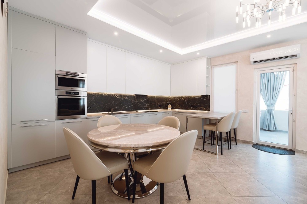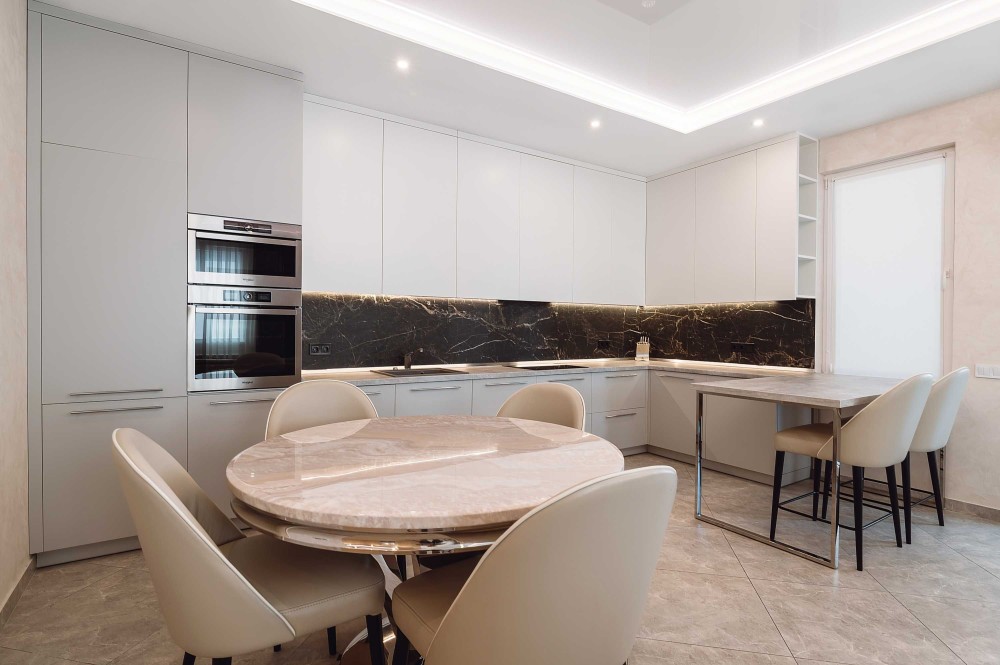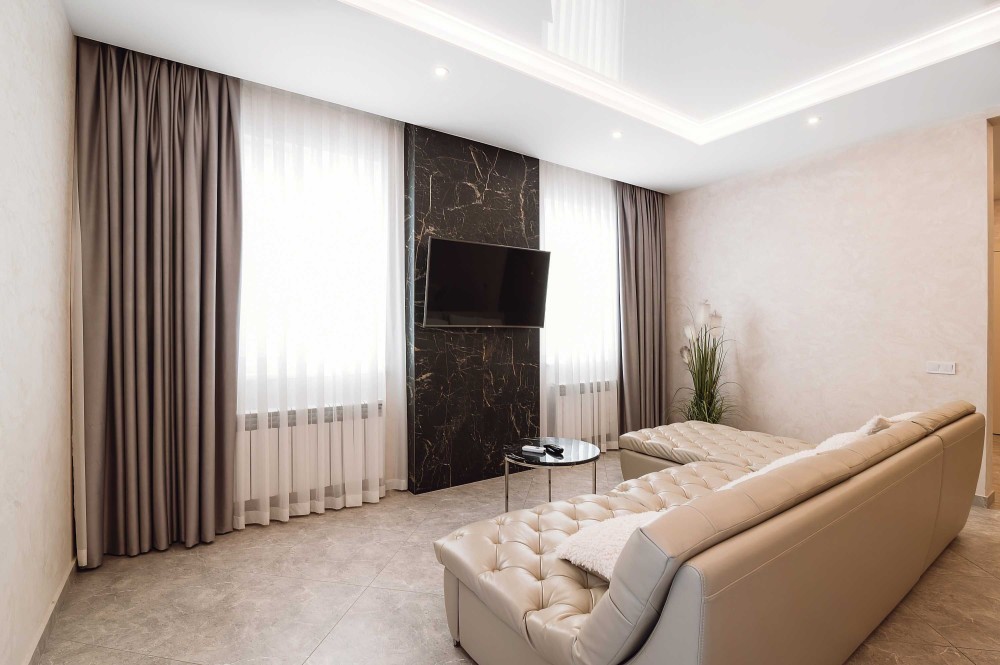 • потолки – гипсокартон + глянцевые натяжные с подсветкой