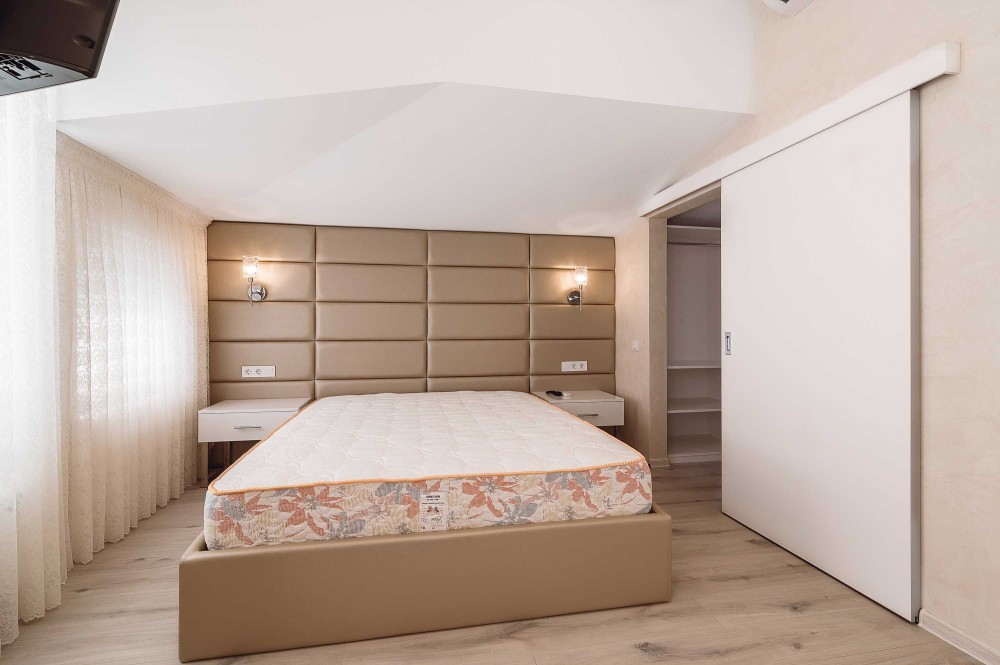 Выполнен дизайнерский ремонт в светлых тонах.