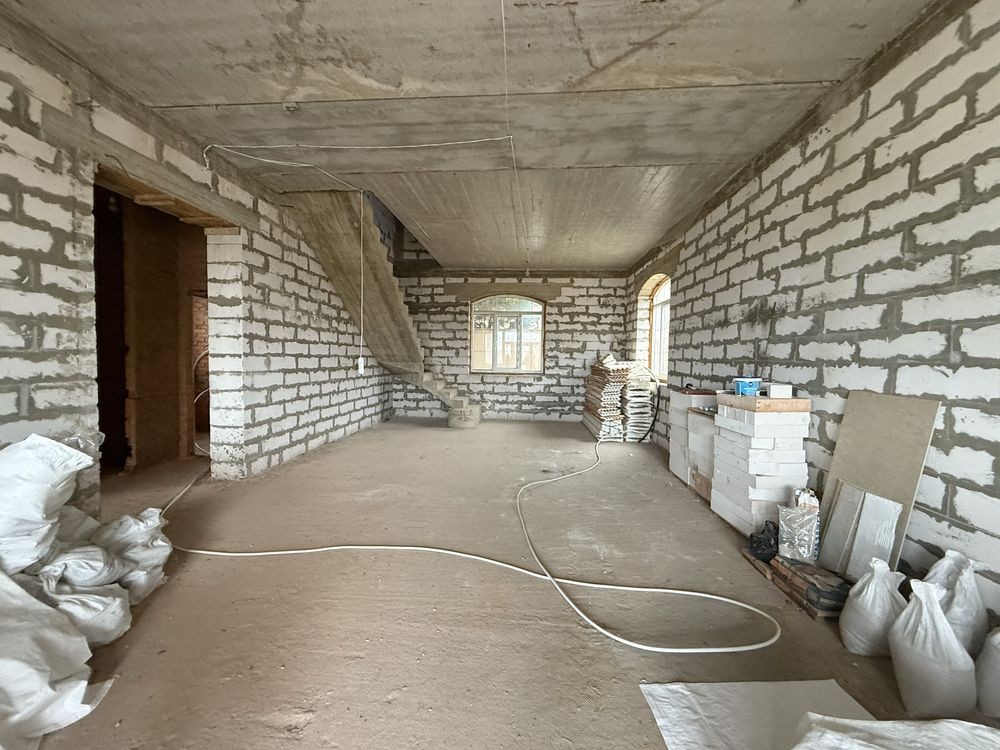 продам дом 12.2*11.6.вальмовая крыша металлочерепица немец, свет 3 фазы 17 кВт счётчик день ночь . 18 шт жБ колон в доме,газоблок по периметру 400мм,межкомнатные стены 200мм. фундамент высота 110см, участок 12 соток 20м*60м 0961547122