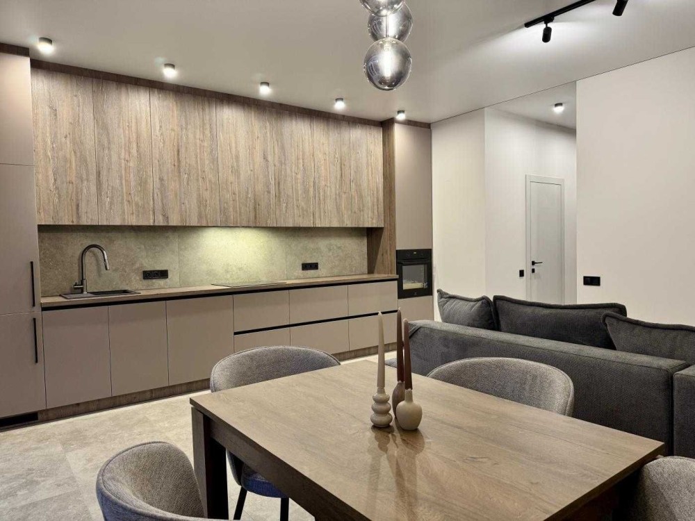 Кухня обладнана усією побутовою технікою. Якісна сантехніка. Також входить диван, телевізор та штори.