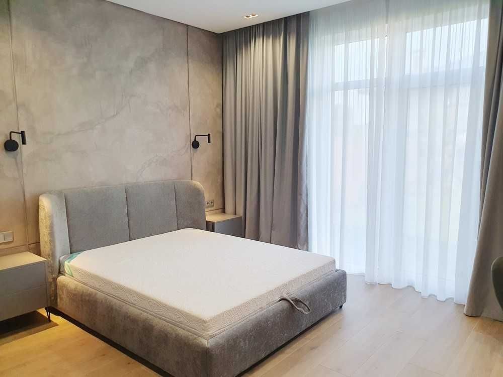 145м.кв. 1-но этажный дом с высокими потолками, большими панорамными окнами, просторными спальнями, гостиной студией с выходом на остекленную террасу. Дом построен в стиле хайтек, стены из газобетона + утеплен. Внутри выполнен дорогой и качественный дизайнерский ремонт, полностью укомплектован встроенной и мягкой мебелью, а также всей необходимой бытовой техникой, включая кондиционеры, централизованную систему вентиляции, скоростной интернет и видеонаблюдение. По планировке: кухня – студия, 3 спальни, гардеробные, хоз/комната, 2 санузла. Дом строился для себя, поэтому ни на чем не экономили !