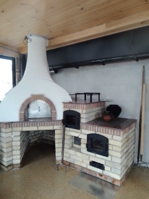 Є мангал, пічь, плита на дровах, казани, шампура - для приготування їжі на дровах.