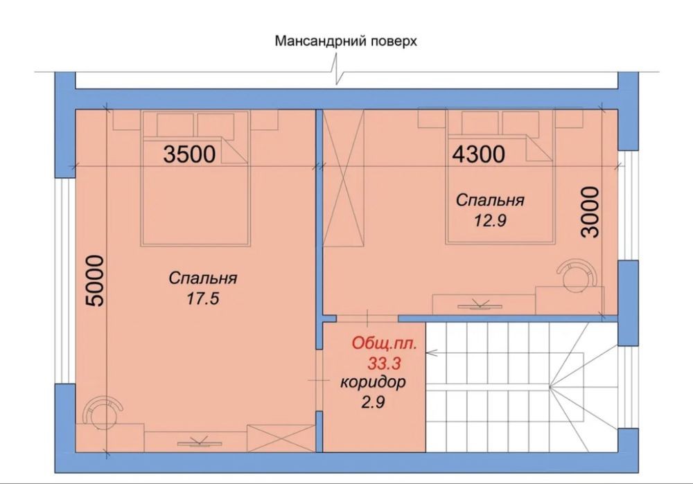 3-й этаж: 2 спальни.
