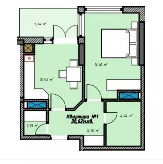 • Общая площадь 39 м2