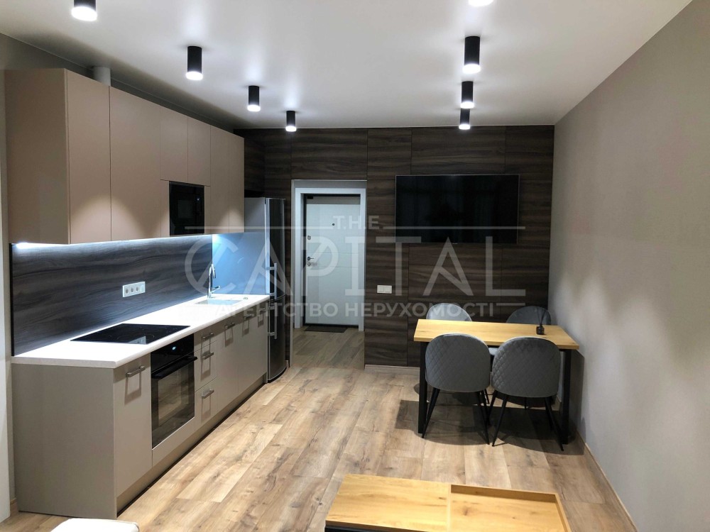 Планування: кухня-студія, окрема спальня, гардеробна, суміщений санвузол.